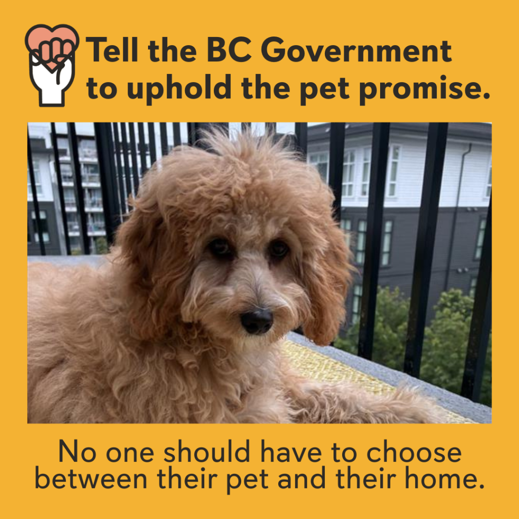 “I had to sell all of my belongings and now I live in my vehicle, as I need to stay in the lower mainland but cannot find a house in my price range that will accept a pet.” No one should have to choose between their pet and their home. But in BC 1.6 million […]